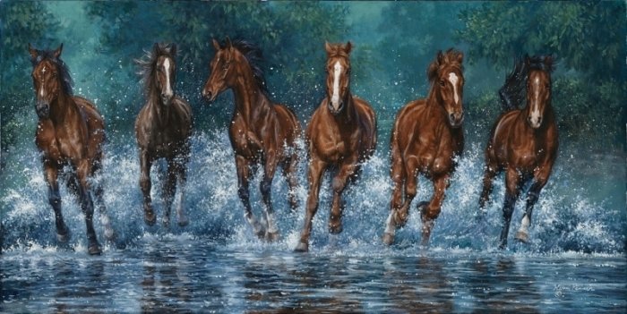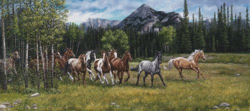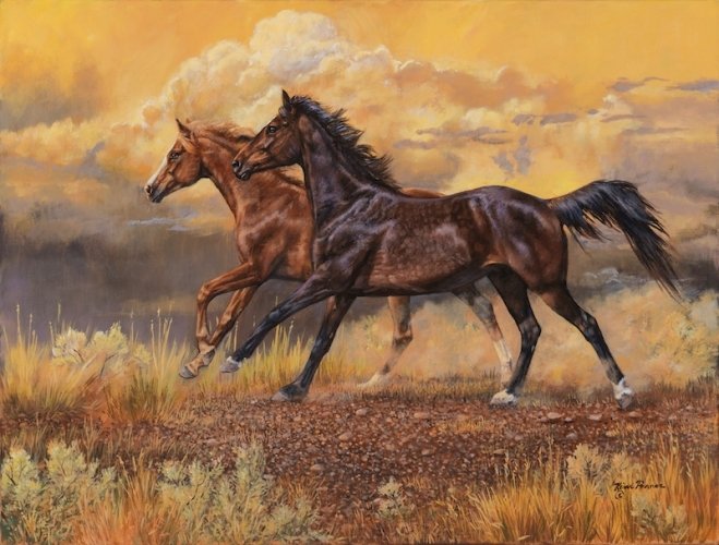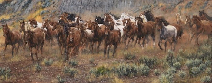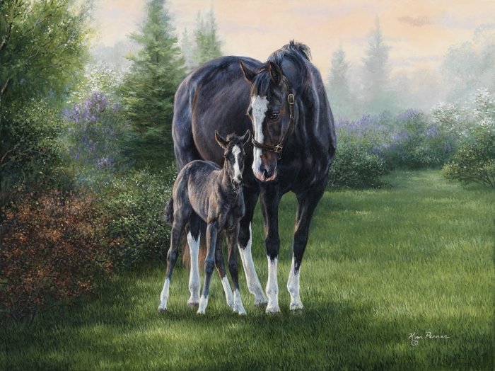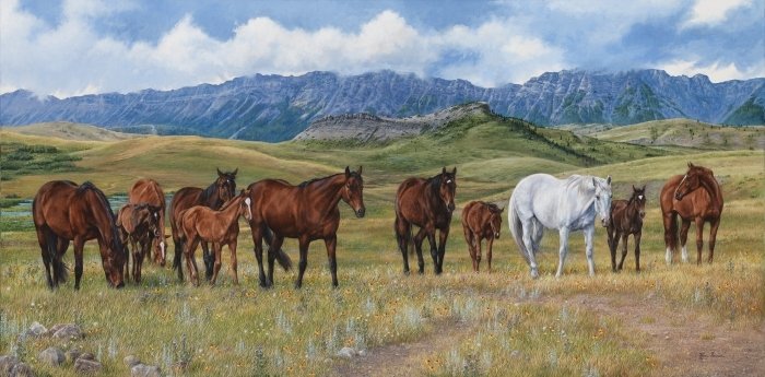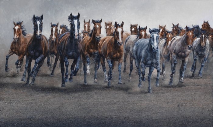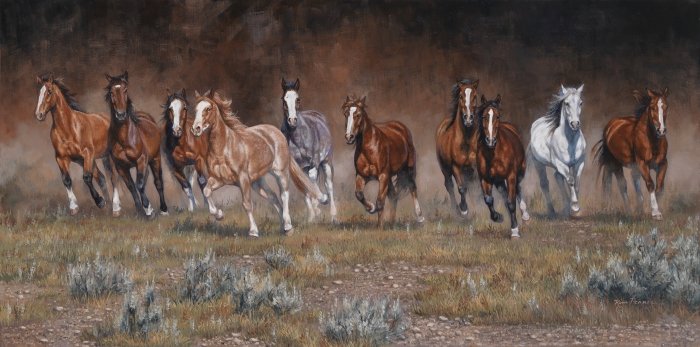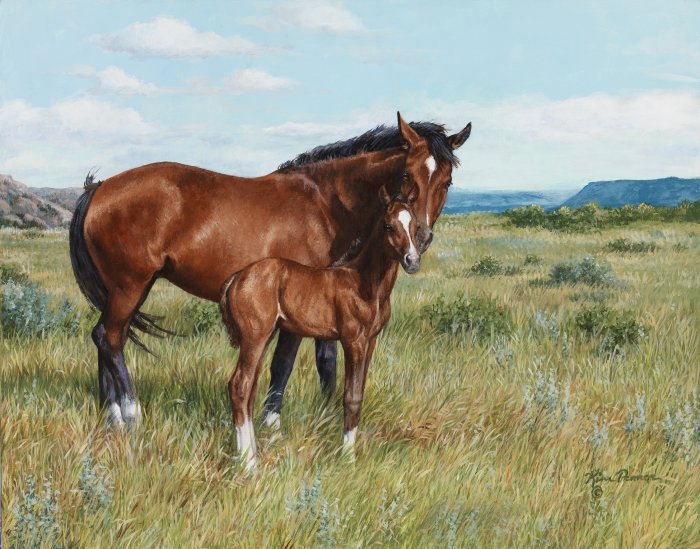 Absolutely. Whether it’s a quiet moment between horse and foal or the energy of a galloping herd, each piece reflects a real observation, memory, or connection Kim has experienced firsthand.