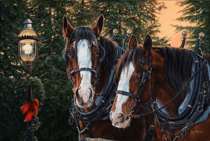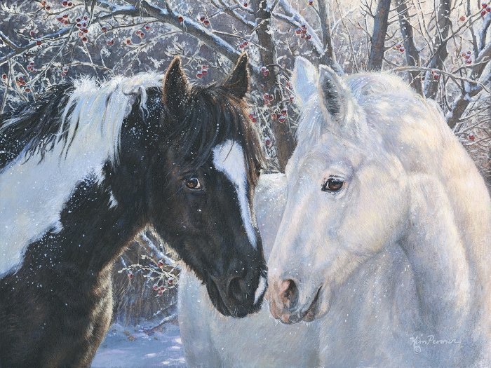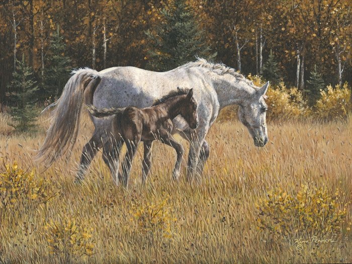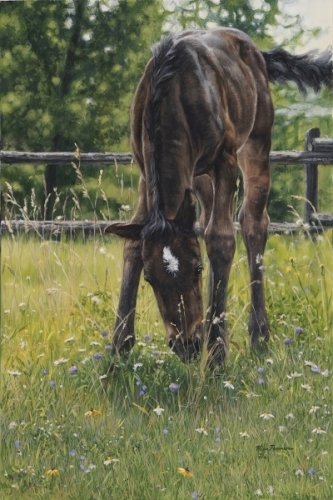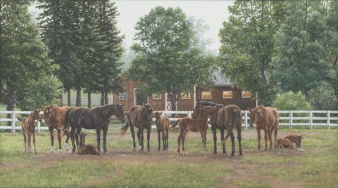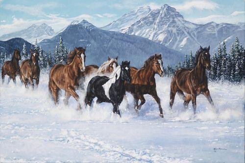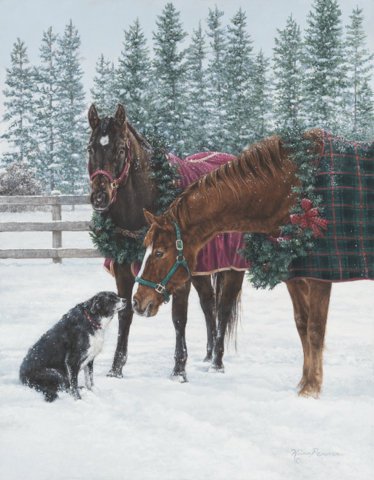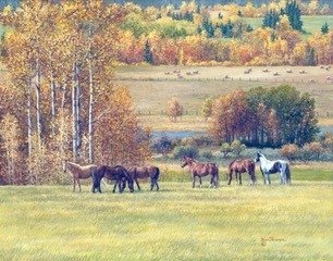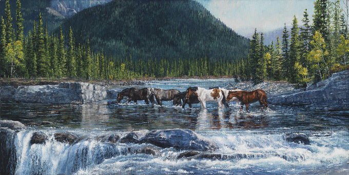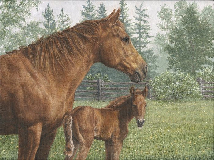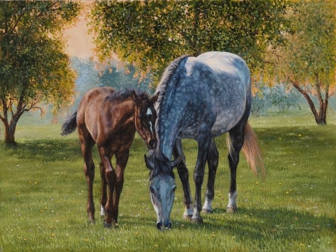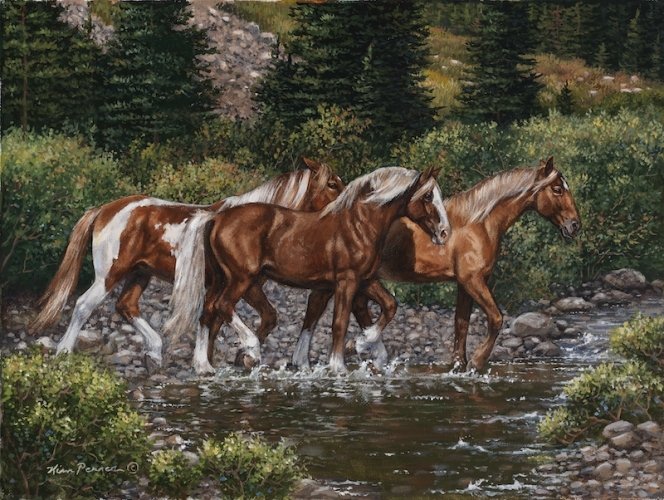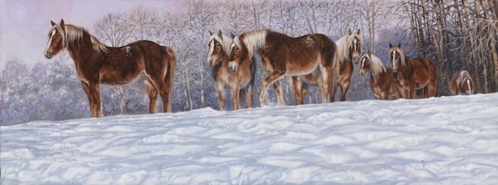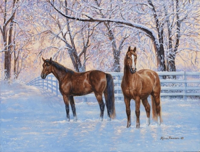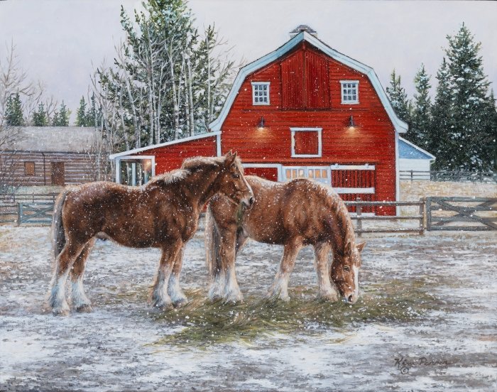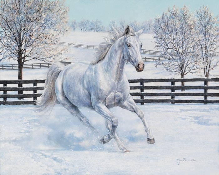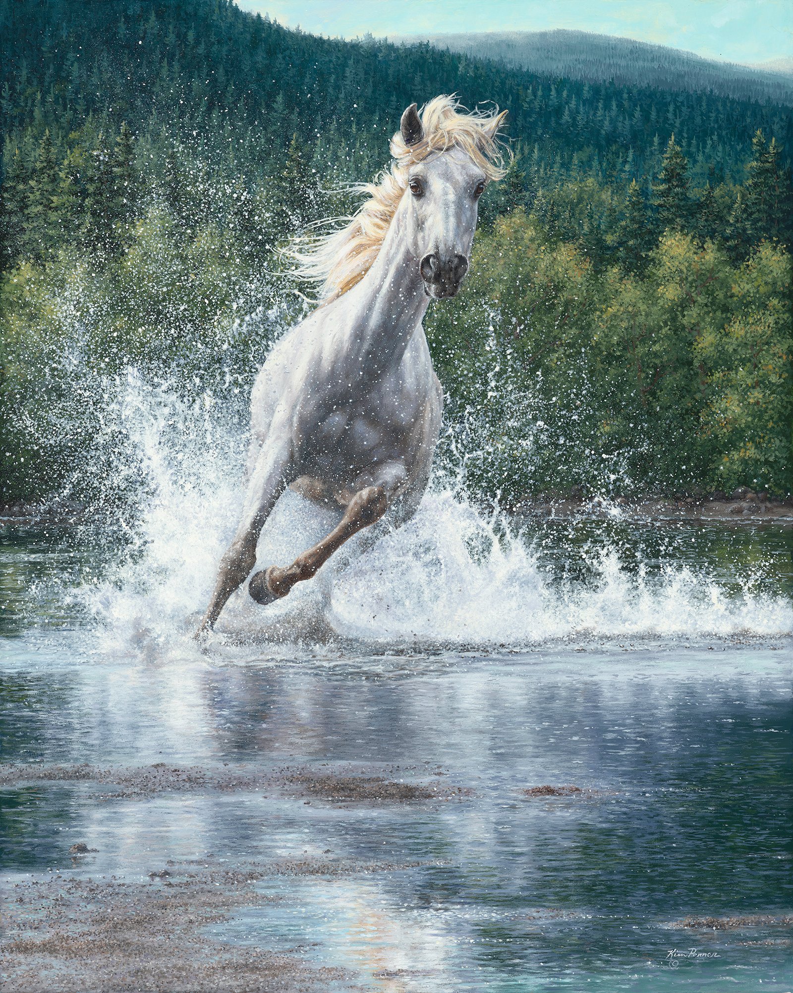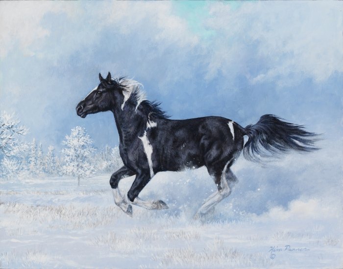 Yes. Kim always carries her camera and photographs horses, landscapes, and spontaneous moments that become the foundation for her compositions.